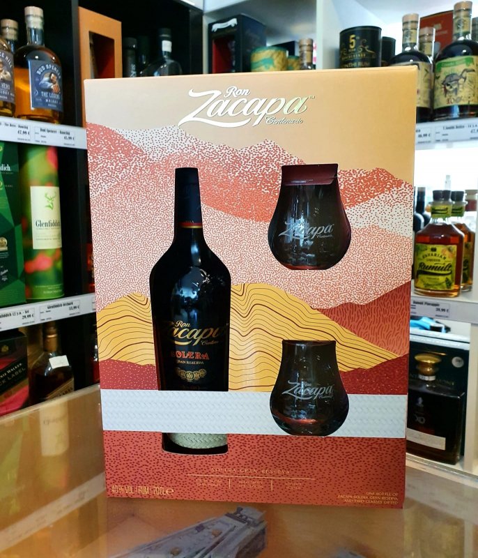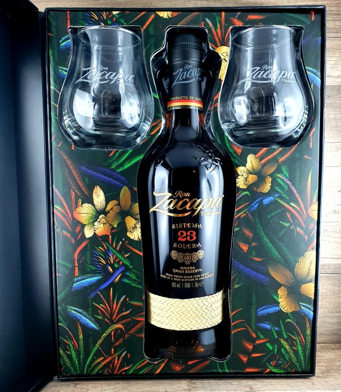 Zacapa Solera 23 mit 2 Gläsern